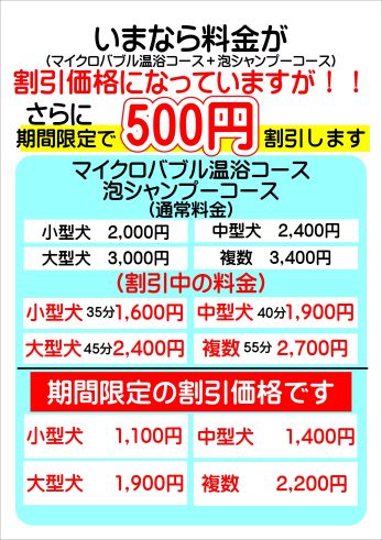 【マイクロバブル温浴+泡シャンプーコース体験割引のお知らせ】